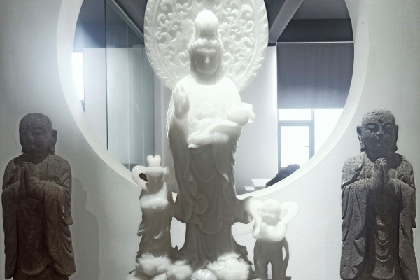 Guanyin stone carvings are a classic category of religious stone carvings and art in China. They are made from stones such as granite and white marble, depicting the solemn and kind image of Guanyin Bodhisattva.