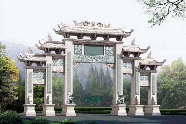 石雕牌坊是指用石头修建的牌坊,是一种装饰建筑物。常见于古代陵园。如北京明代陵墓外面的大红门前,有石牌坊一座。整个牌坊为五间六柱十一楼,结构匀称和谐,造型美观大方。牌坊用纯一色的汉白玉雕制而成。柱石的上方刻有麒麟、狮子,夹柱石的浮雕有双狮戏彩珠,牌坊上还雕刻着其他怪兽云纹。是我国建筑艺术的一大特色。
