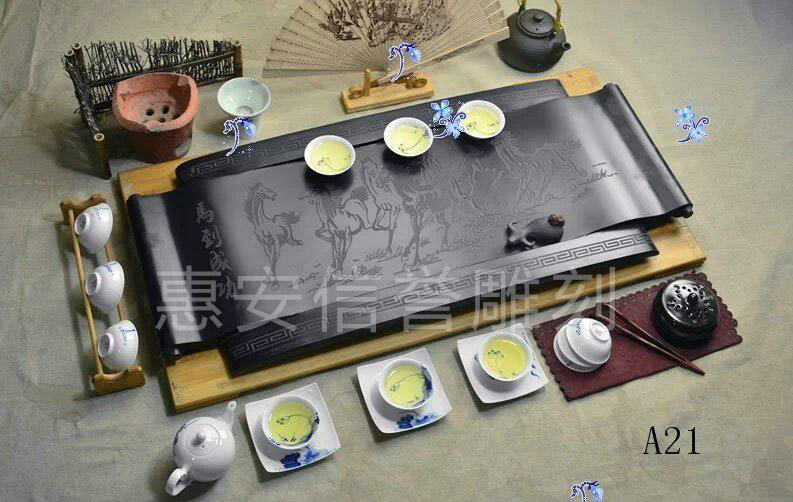 雕刻图案多融入中国诗书画印元素,主题追求高雅简洁,与茶具形成整体协调。选购时需注重雕刻主题的文化内涵。